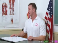 Innocent high school babe Maia Davis strips down and shows us her small tits before being fucked hardcore by her teacher.
