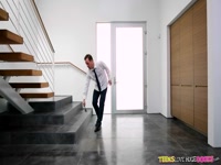 Hot teen brunette seduces her new lover with her big tits before letting him penetrate her moist twat as much as he wants.