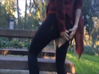 Beauitful brunette teen loves to get kinky in the public park as she toys her wet pussy until she squirts and cums.